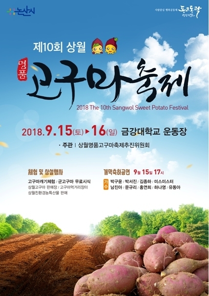 또한 고구마 외에도 논산을 대표하는 우수 농·특산물 직거래장터, 고구마 음식코너 등 각종 상설행사를 운영하며 밸리댄스, 폴댄스, 기타교실, 노래교실 한마당 등 다양한 문화공연도 기대해도 좋겠다.