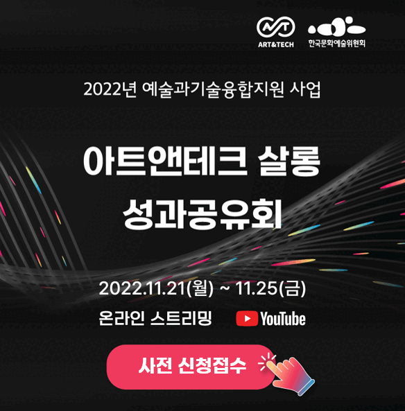 이번 ‘2022 아트앤테크 살롱-성과공유회’는 현재 온라인으로 참가 접수를 받고 있으며, 행사 기간 한국문화예술위원회 유튜브 채널을 통해 생중계된다.