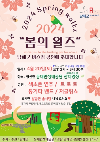 [페어뉴스]= 창선면에 소재한 동대만 생태공원 잔디광장에서 오는 4월 20일 제2회 봄의 왈츠 거리공연이 열린다.