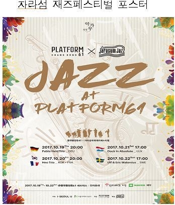 <플랫폼 창동 61> 월드 뮤직시리즈의 화려한 마무리는 작년에 이어 ‘자라섬 국제재즈페스티벌’과의 협력으로 이루어지는 <Jazz at Platform61>이 장식한다. 10월 19일부터 22일까지 4일간 계속되는 이번 공연은 독일 출신의 ‘파블로 헬트 트리오’(19일), 프랑스와 한국 출신 다국적 밴드 ‘에오 트리오’(20일), 룩셈부르크 출신 밴드 ‘독 인 앱솔루트’(21일), 스웨덴 출신 부자(父子) 듀오 ‘울프&에릭 바케니우스’(22일)가 출연한다.