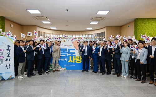 또 22∼24일에는 본청 1층에 촛대바위, 일몰 등 독도 주변과 울릉도에서 바라본 독도, 독도 법령, 독도 연표 등이 전시된 사진과 초등학교 학생들이 독도를 사랑하는 마음을 담아 작성한 손 글씨 엽서 등을 전시했다.