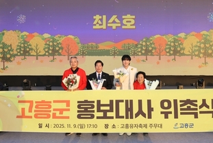 가수 최수호는 "아버지의 고향인 고흥에서 첫 번째 홍보대사를 맡게 돼 뜻깊다"며 "트로트 가수로 왕성한 활동과 더불어 천혜의 자연환경과 우주항공 중심도시로 거듭나고 있는 고흥을 널리 알리겠다"고 당찬 포부를 밝혔다.
