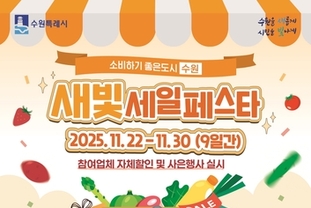 [페어뉴스]= 수원특례시(시장 이재준)가 11월 22∼30일 '제6회 새빛세일페스타 수원'을 연다. 개막 행사는 22일 오후 1∼5시 송죽솔대 골목형 상점가 일원에서 개최된다.