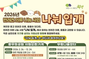 '나눠 입개'는 2026년 부평구가 새롭게 추진하는 자원순환 사업으로, 사용하지 않는 반려견 의류와 용품을 주민 간에 교환함으로써 폐기물 발생을 줄이고 자원순환 실천 문화를 확산하고자 마련됐다.