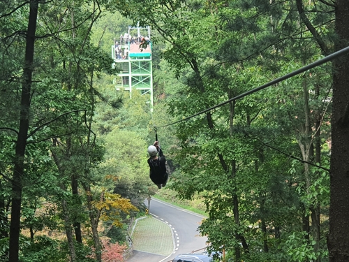 이용요금은 짚라인 3만5000원(5개 코스 기준), 숲속모험시설은 키즈코스 2000원, 어린이 짚라인 5000원이다.