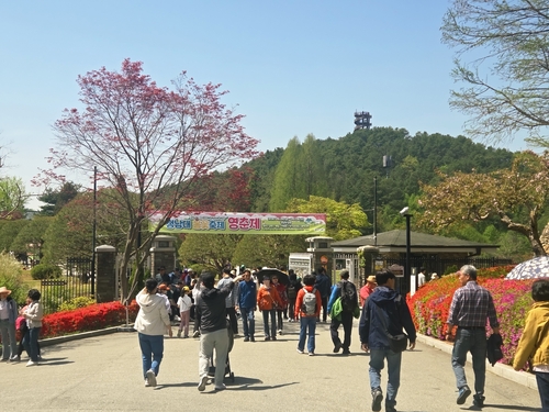 올해 영춘제의 가장 큰 특징은 단연 '모노레일'이다. 지난 3월 26일 정식 개통한 모노레일은 약 330m 구간을 운행하며 관람객들을 제1전망대까지 인도한다.
