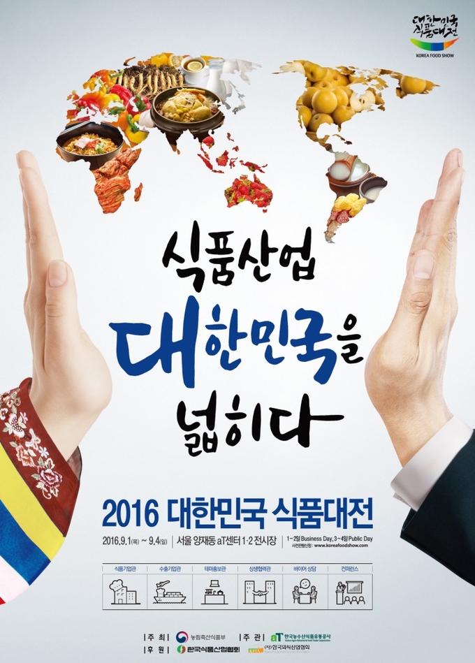 [페어뉴스]= 농림축산식품부와 한국농수산식품유통공사(aT)가 주최하는 대한민국 최대 식품 박람회 ‘2016 대한민국 식품대전’이 9월 1일부터 4일까지 양재동 aT센터에서 열린다.