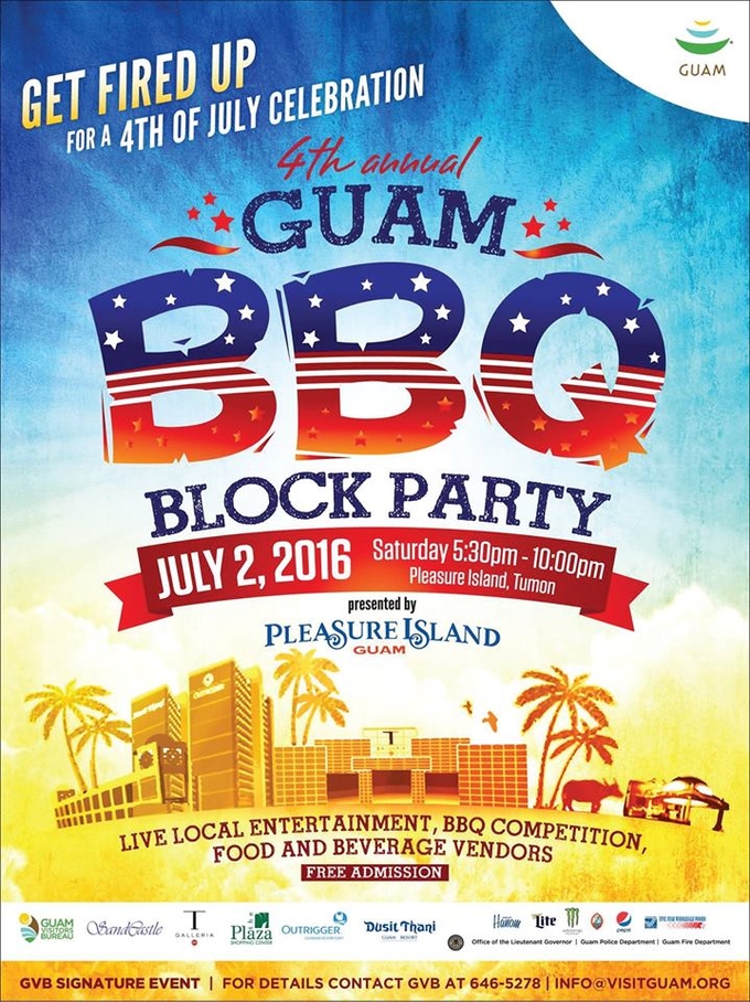 [페어뉴스]= 올해로 4회째를 맞이하는 플레져 아일랜드 '괌 BBQ 블록파티'가 오는 7월 2일 토요일 오후 5시 30분부터 오후10시까지 괌의 중심지인 투몬에서 개최된다. 괌 정부 관광청이 주관하는 괌 BBQ 블록파티는 괌의 대표적인 요리 & 문화 이벤트로써 괌의 진정한 요리 전통 뿐만 아니라 괌의 특색을 엿볼 수 있는 행사이다.
