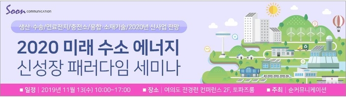 [페어뉴스]= 순커뮤니케이션은 11월13일(수)에 여의도 전경련 컨퍼런스 토파즈룸에서 “2020 미래 수소에너지 성장 패러다임 세미나” 를 개최한다.