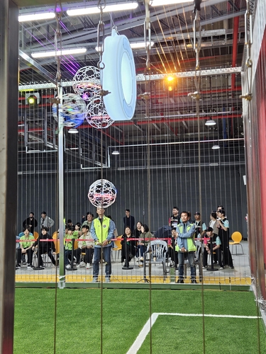 드론축구는 축구공 모양 드론볼을 조종해 3m 정도 높이 공중에 매달린 원형 골대에 집어넣어 승부를 가리는 미래형 ICT 레저스포츠로 유소년대회의 경우 전용 경기장(가로 8m, 세로 4m, 높이 3m) 안에서 5명이 한 팀을 이루어 3분 동안 진행되며 짧은 시간 고도의 집중력과 팀원들 간 협동심을 요하며 차세대 E-스포츠로 인기를 얻고 있다.