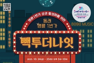 [페어뉴스]= 부산 동래구(구청장 장준용)는 오는 10월 24일(금)부터 25일(토)까지 이틀간 오후 3시부터 10시까지 명륜1번가 일대에서 '명륜1번가 나이트 페스티벌(빽투더나잇)'을 개최한다.