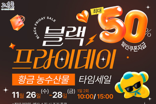 군 농업정책과 관계자는 “블랙프라이데이는 이제 국내 소비 흐름을 주도하는 중요한 연말 쇼핑 시즌으로 자리 잡았다”며 “이번 타임세일을 통해 더 많은 소비자가 고흥 농수산물을 합리적인 가격에 경험하길 바라며, 지역 농가의 판로 확대에도 도움이 될 것으로 기대한다”고 말했다.