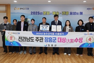 [페어뉴스]= 장흥군이 '2025년 전남 농수산식품 수출 우수 시·군' 평가에서 대상(大賞)을 수상했다.